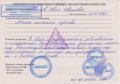 Справка от физкультуры: какие справки дают освобождение от физ-ры